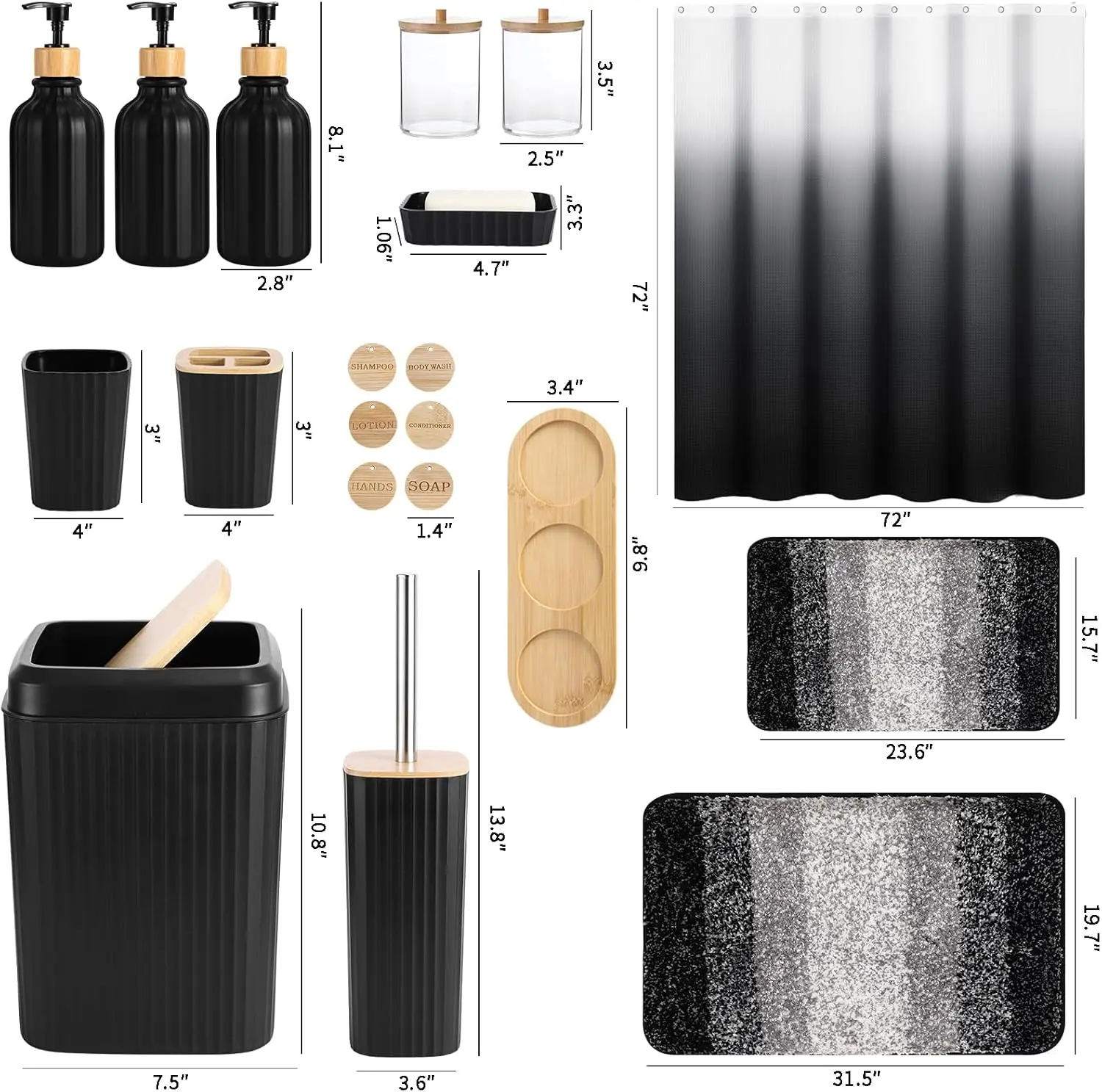 32PCS Bathroom Set. Shower Curtain, Rugs. Trash Can